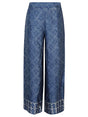 Wide leg trousers, with ethnic print, elastic waist and two side welt pockets. Printed silk trousers Size and Fit - This piece fits true to size. We recommend you get your regular size. Model is 1,75m / 5ft 8in wearing size S
