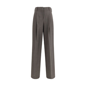 Virgin Wool Pants by P.A.R.O.S.H, wide-leg pattern, elasticized waistband, front button and zipper closure, two side slash pockets, two welt pockets on back, belt loops waistband.