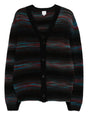 black V-neck button fastening horizontal stripes long sleeves Wool v-necked cardigan