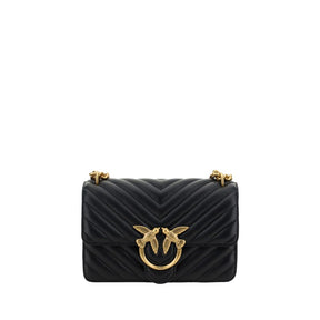 PINKO Black Calf Leather Bos Taurus Shoulder Bag