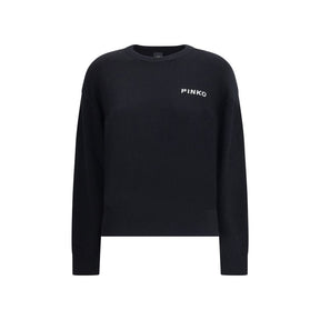The Pinko Logo Sweater is a casual piece with a bold character. Crafted with a ribbed crew neck, hem and cuffs, it is enriched by the iconic jacquard signature on the front and a discreet logo on the back, for a recognizable and contemporary look.