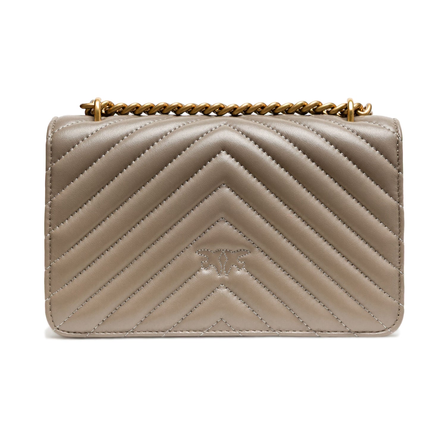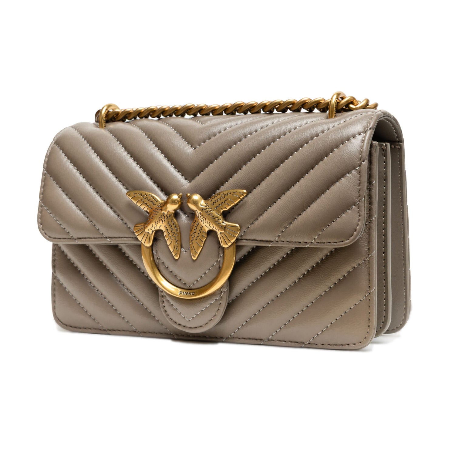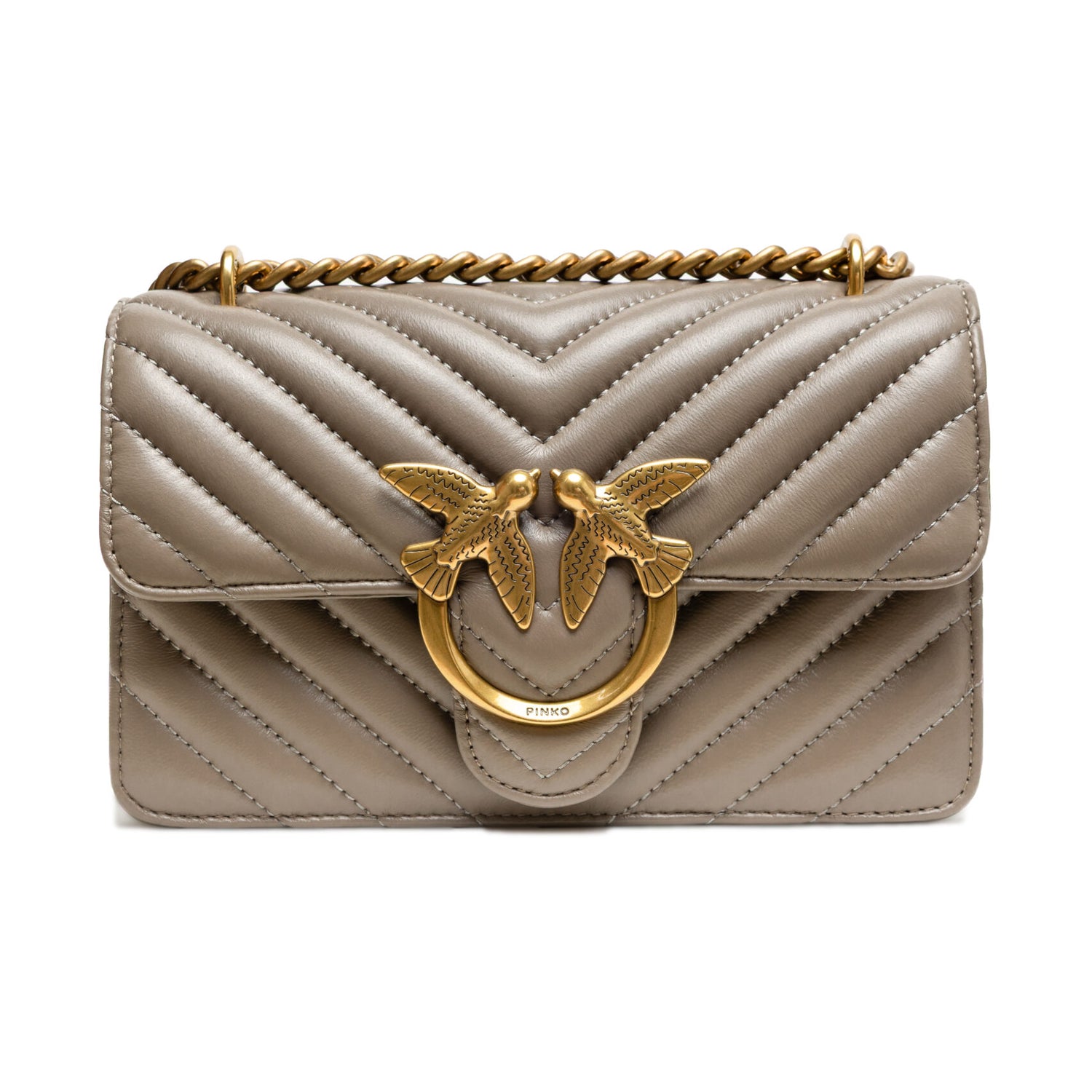 PINKO Grey Leather Love One Mini Shoulder Bag