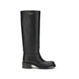 High Leather Boots by Prada are made of smooth leather and feature a sleek, essential design. They feature a round toe and are embellished with a laminated printed logo on the side, as well as a printed logo on the inside, a discreet but distinctive detail.