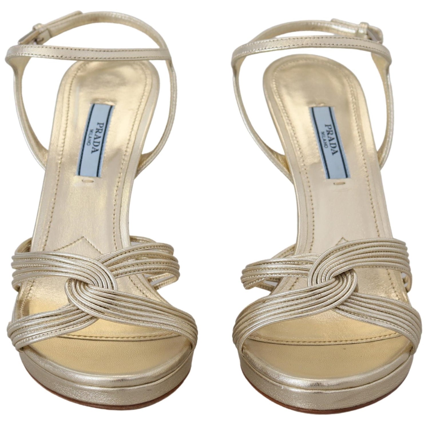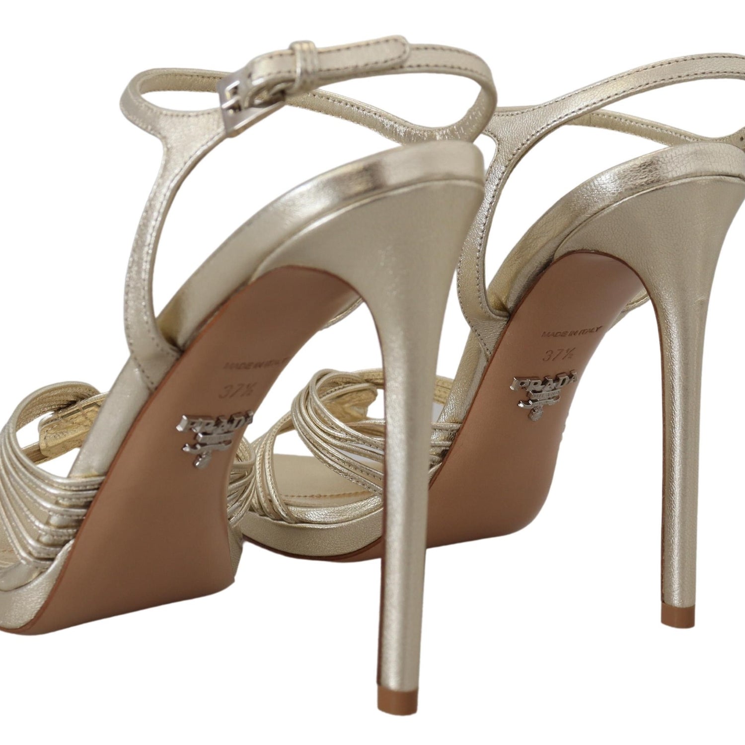 Prada Gold Leather Sandals Ankle Strap Heels Stiletto Sandal