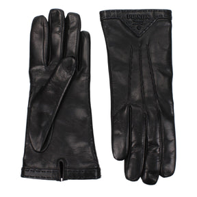 The product with MPN 1GG46C038F0ES9 and code F81540 leather in black is a gloves designed by Prada. It has features like side logo.