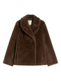 brown faux fur double-breasted fastening wide notched collar long sleeves Faux fur jacket