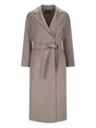 grey belted waist two side patch pockets long sleeves Long wool coat