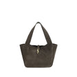 The Le 5 à 7 Bea Tote Bag by Saint Laurent, made of suede leather, is an elegant versatile accessory with a refined design. The closure features a strap with a Cassandre logo plaque and a snap button, giving it a distinctive and sophisticated touch. The two top handles allow it to be carried comfortably, while the interior, with a single compartment, offers ample space for essentials.