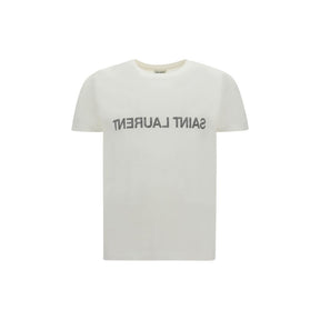 Cotton T-Shirt by Saint Laurent, ribbed crew neck, iconic brand monogram in contrast on front and back, regular fit.