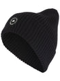 black/white cotton ribbed knit logo patch to the front turn-up brim pull-on style Cotton blend beanie