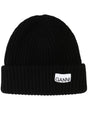 black wool blend ribbed knit logo patch to the front turn-up brim Wool ribbed beanie