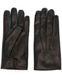 black lambskin smooth grain pull-on style full-finger design debossed logo to the rear wool lining Leather gloves