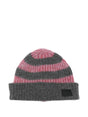 grey/pink cotton blend striped pattern ribbed texture folded brim logo detail Wool striped beanie