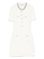 cream jewel-embellished neckline short sleeves button detailing patch pockets Crystal embellished dress