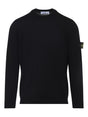 black wool crew neck long sleeves ribbed cuffs logo patch Wool crewneck sweater