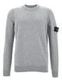 grey crew neck long sleeves ribbed cuffs logo badge Wool crewneck sweater