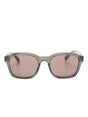 brown rectangle frame tinted lenses nose pads logo detail straight temples These glasses come with a protective case.