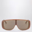 Retrosuperfuture sunglasses made in collaboration with MM6 Maison Margiela, featuring a brown acetate frame, characterized by a mask design, Numeric logo engraved on the temples, and brown lenses.