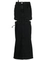 black cotton embroidered logo to the rear cut-out detailing mid-rise belt loops front button and zip fastening classic five pockets floor-length Denim skirt Size and Fit - This piece fits true to size. We recommend you get your regular size. Model is 1,75m / 5ft 8in wearing size 27 (WAIST CM)
