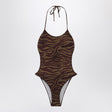 The Attico Zebra one-piece swimsuit in khaki/brown