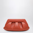 Orange leather clutch from THEMOIRÈ featuring a double magnetic closure, decorative ruffles, a removable shoulder strap, fabric lining and gold-coloured metal hardware. Size and Fit - Width 30 cm x Height 16 cm x Depth 11 cm Shoulder strap lenght: 105 cm
