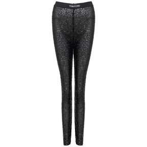 Tom Ford Stretch Sequin Black Pants. Contrast logo elastic waistband, straight leg, concealed zip at bottom. Composition: 100% Polyester.