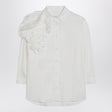 Douuod white and lime green striped cotton shirt, featuring a front button closure, long sleeves with buttoned cuffs, and a classic collar.