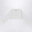 Short cardigan warm heart by Il Gufo in milk white cotton, characterized by long sleeves and a round neck with a button on the front.
