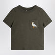 Black faded organic cotton crew neck T-shirt by Mini Rodini, featuring short sleeves and an applied chest pocket with a seagull embroidery.
