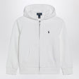 Polo Ralph Lauren sweatshirt in white cotton blend, featuring a hood, front zip closure, long sleeves, two front pockets, logo embroidery on the chest, and ribbed edges.