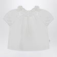 Teddy & Minou white cotton blouse, featuring a round neck with ruffles and short sleeves with elasticated edges.