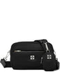 black adjustable shoulder strap detachable mini pouch front zip pocket silver-tone hardware Virginia nylon shoulder bag Size and Fit - Width 23 cm, Height 15 cm, Depth 7 cm, Shoulder strap 100 cm