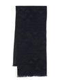 black wool jacquard logo motif signature eagle head motif frayed edge rectangle body Allover logo wool scarf Size and Fit - LENGTH: 175.0 Centimetres. WIDTH: 38.0 Centimetres.