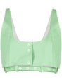 Suiting crop top from GANNI featuring light green, organic cotton, round neck, sleeveless, front press-stud fastening, cut-out detailing, belted waist and cropped. Conscious: This item is made from at least 50% organic materials. Organic cotton top Size and Fit - This piece fits true to size. We recommend you get your regular size. Model is 1,75m / 5ft 8in wearing size 36 (FR)