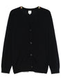 midnight blue front button fastening ribbed cuffs and hem V-neck long sleeves Wool cardigan