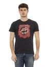 Elevate your wardrobe with the impeccable style of Trussardi Action. This sleek black T-shirt exudes confidence with its bold front print. Crafted with the finest blend of cotton and viscose, it’s a masterpiece of comfort and sophistication. Perfect for the modern trendsetter aiming to make a statement with every entrance.