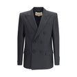 The double-breasted wool Jacket by Valentino Garavani, crafted from fine wool gabardine that reflects the Maison’s impeccable tailoring heritage. The structured silhouette features clean lines, classic notched lapels, and a double-breasted front with button fastening. Front flap pockets complete this piece, a timeless expression of refined elegance designed to transition seamlessly from formal occasions to contemporary everyday style.