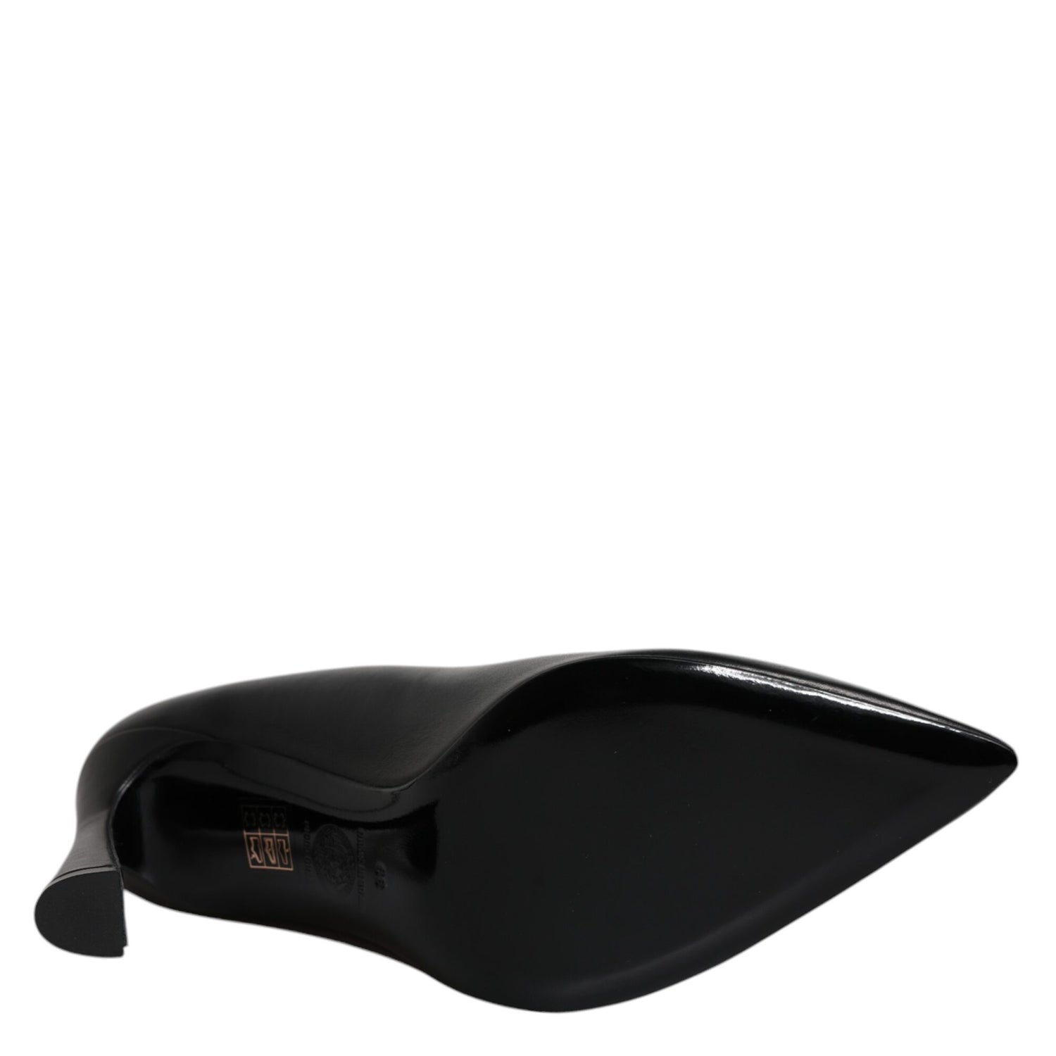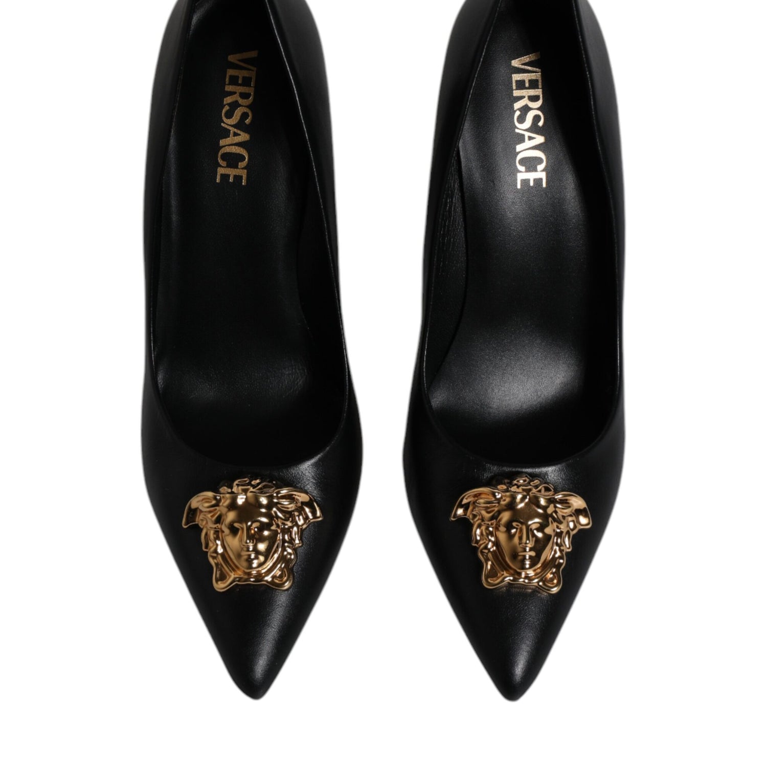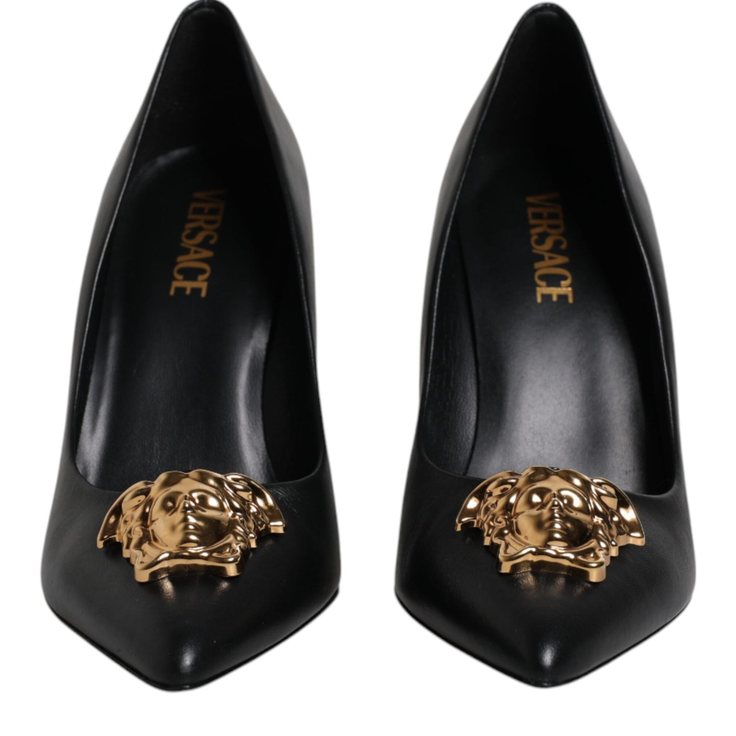 Versace Black Leather Logo Plaque High Heels Pumps Shoes