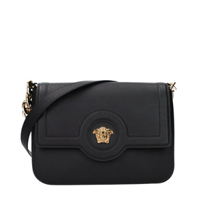The product with MPN 1015535DVIT2T1B00V and code F85538 leather in black is a crossbody bags designed by Versace. It has features like back logo, adjustable shoulder.