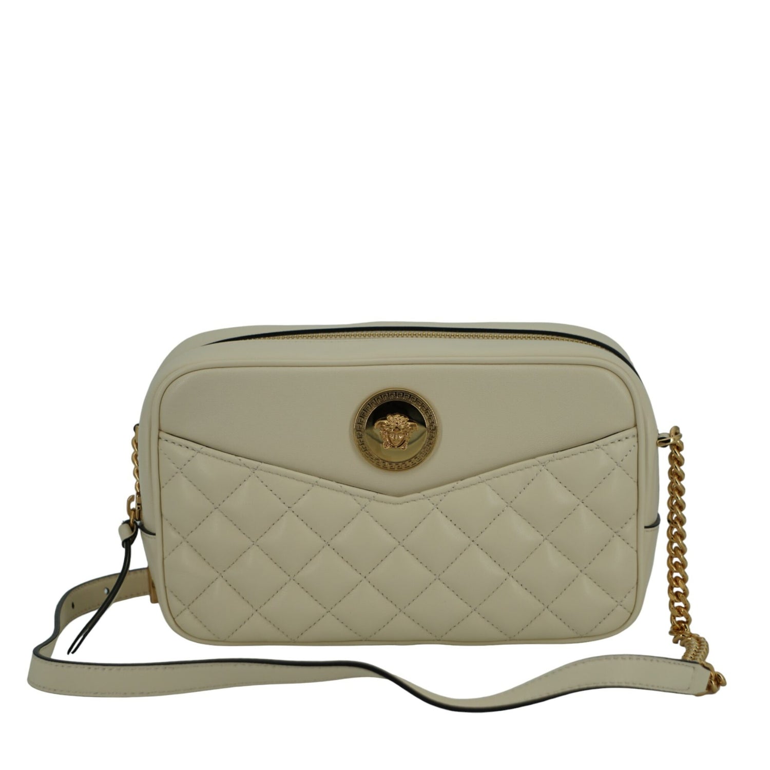 Versace White Lamb Leather Medium Camera Shoulder Bag