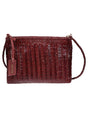 Burgundy color, woven pattern, single compartment, internal pocket, zip closure, removable leather shoulder strap. Saba handbag Size and Fit - Width 13,78 in / 35 cm