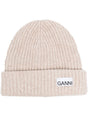 off-white recycled wool wool blend ribbed knit logo patch to the front turn-up hem Wool ribbed beanie
