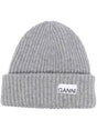 grey wool-recycled wool blend ribbed knit logo patch to the front turn-up brim Wool ribbed beanie