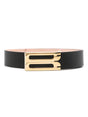 black calf leather smooth grain punched holes adjustable fit gold-tone hardware logo-buckle fastening Leather belt