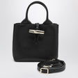 Size XS handbag from Longchamp made of fine-grained black leather, featuring two top handles, a bamboo fastening, a removable and adjustable shoulder strap and silver-coloured metal hardware. Size and Fit - Width 15 cm x Height 15 cm x Depth 9 cm Adjustable shoulder strap length min 98 cm - max 114 cm Handle drop: 8 cm