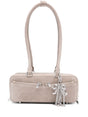 grey top zip fastening two top handles main compartment silver-tone hardware bow detailing internal slip pocket Suede leather shoulder bag Size and Fit - Width 27 cm, Height 11 cm, Depth 9 cm, Handle 30 cm