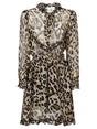Short brown dress, V -neck with laces, long sleeves, with printing, elasticized with life, elastic cuffs, chemisier. Printed silk blend shirt dress Size and Fit - This piece fits true to size. We recommend you get your regular size. Model is 1,75m / 5ft 8in wearing size S
