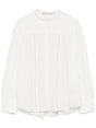white front button fastening band collar three-quarter length sleeves Cora cotton blouse Size and Fit - This piece fits true to size. We recommend you get your regular size. Model is 1,75m / 5ft 8in wearing size S