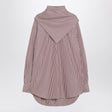 Ami Paris shirt in cherry-coloured striped cotton poplin, featuring a bandana collar, long sleeves with buttoned cuffs, a horizontal silver plate with the Ami De Coeur logo on the back, and an oversized fit. Size and Fit - Model wears size S Model measurements: Height: 182 cm Chest: 79 cm Waist: 62 cm Hips: 90 cm