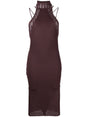 halterneck knitted midi dress from ANDREADAMO featuring brown, stretch-design, panelled design, ribbed knit, halterneck, rear tie fastening, rear criss-cross straps and knee-length. Ribbed midi dress Size and Fit - This piece fits true to size. We recommend you get your regular size. Model is 1,75m / 5ft 8in wearing size S